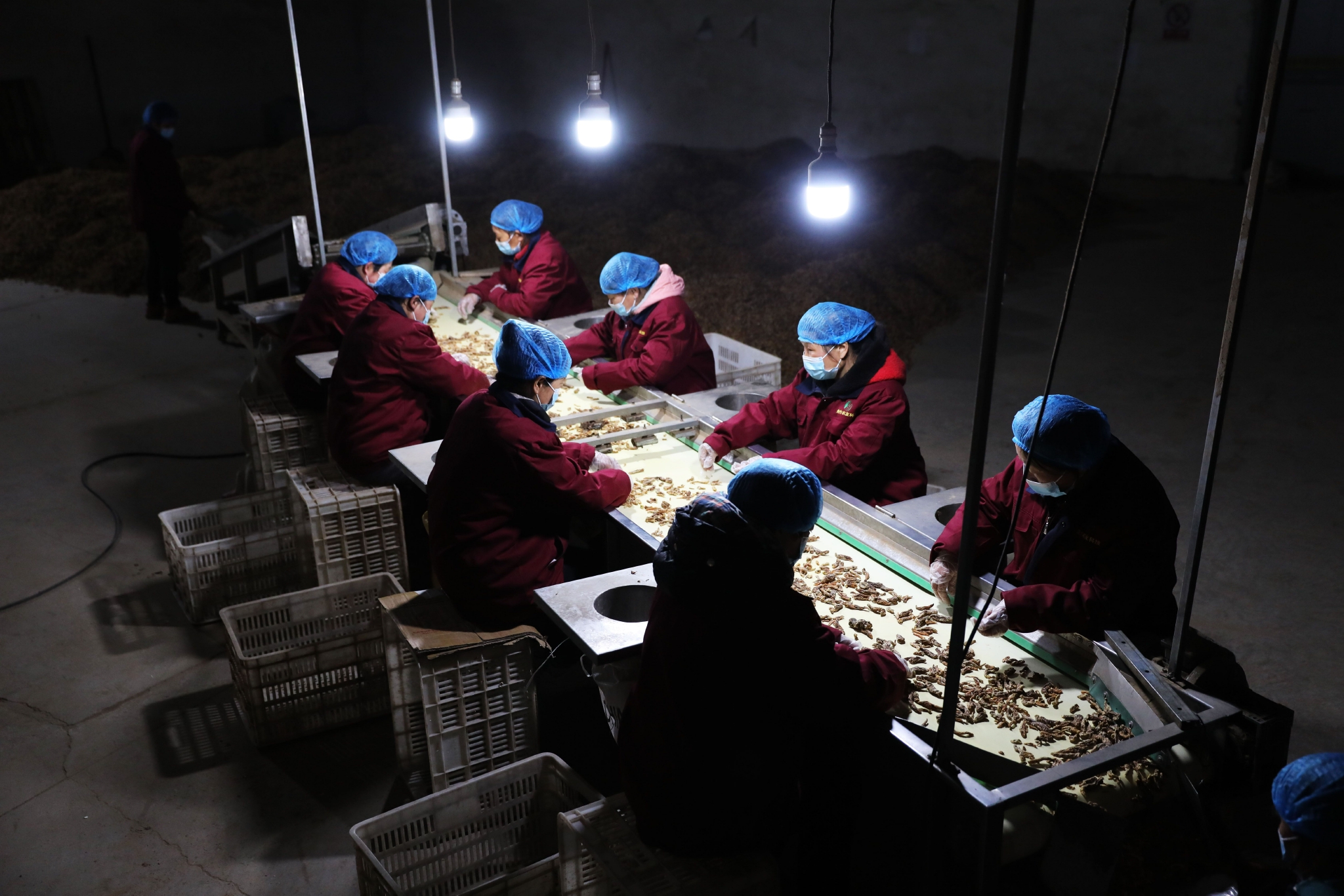 3月16日,在河南省武陟县一家怀药种植专业合作社,工人在分拣出口韩国的怀地黄。新华社发(冯小敏 摄)