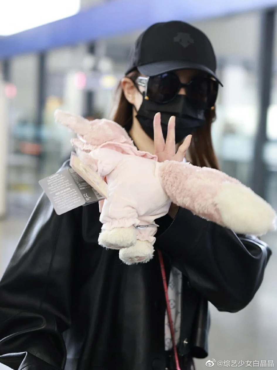 #刘亦菲黑色皮衣高铁路透#茜茜带着上海特产玲娜贝儿回北京了!