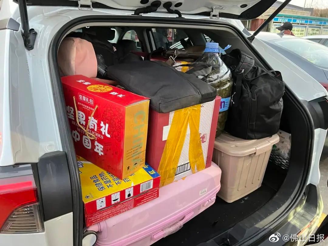 【他们带着“爱的特产”,满载而归!】1月27日是春节假期最后一日,很多市民开始带上“爱的特产”离开老家返回佛山。满满当当的后备箱,都是父母装得溢出来的爱。有不少市民调侃“回趟老家跟进货似的!鸡蛋论筐、蔬菜论捆、水果论箱,后备箱永不落空。”这些被家人塞满的后备箱暖意融融,流动在游子身边,从家乡带走的,方才是家的味道。详情>>