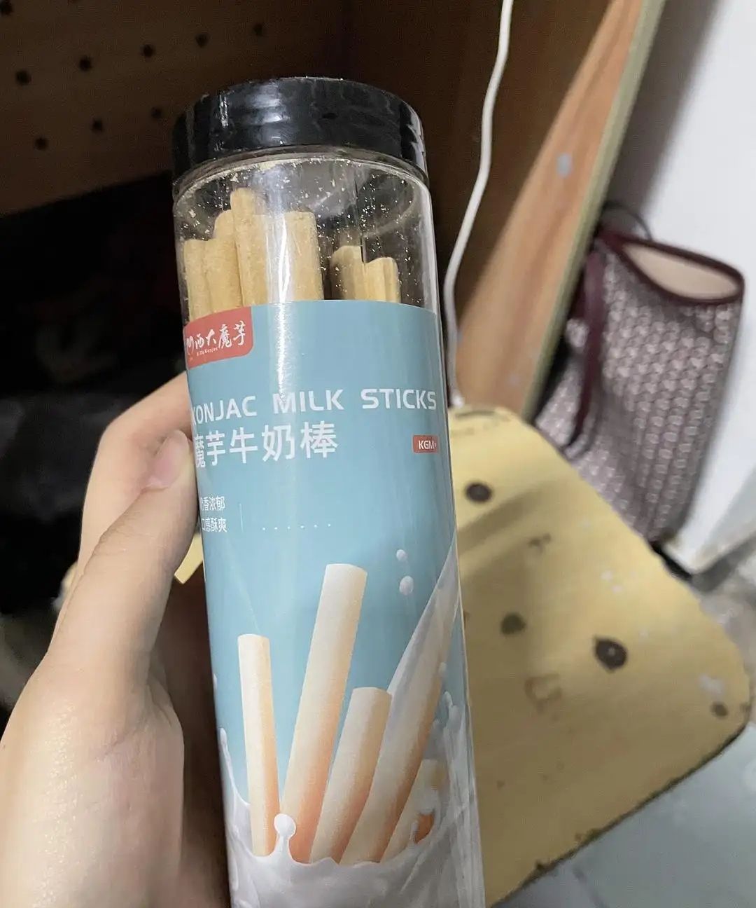 4、重庆西南大学的魔芋牛奶棒,看着感觉干干的,但是味道一点都不会干,随时随地想吃就吃,包装还特别的干净,看着就舒心,而且吃起来特别解馋,你嘴馋就可以吃它,我都当磨牙棒的,磨立事牙用的!