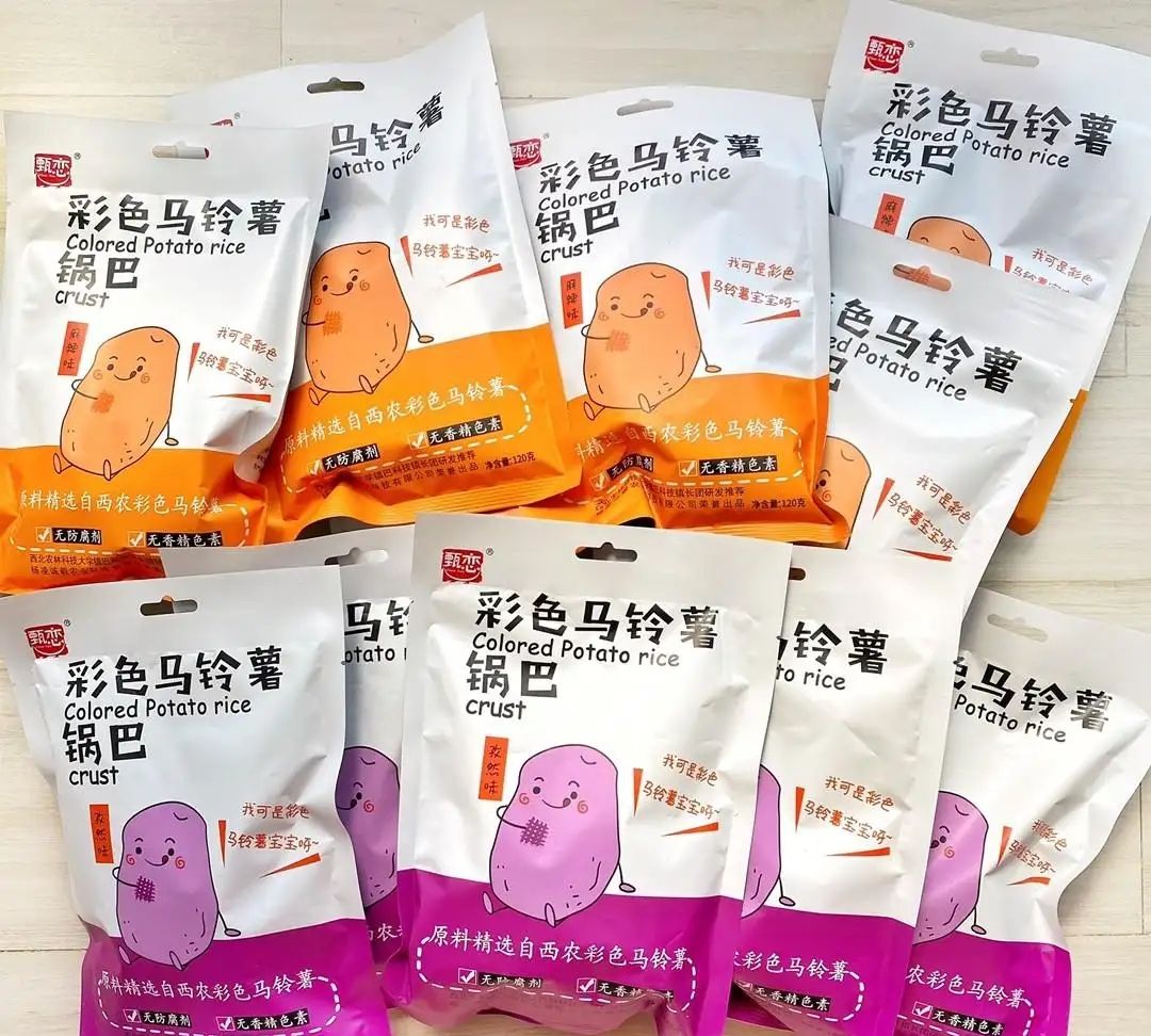 3、西北农林科技大学的彩色马铃薯锅巴,可以说嘎嘣脆,而且是两种口味任选,超级nice,小姑娘都老喜欢了,在寝室追剧或者是休息在家吃,都嘎嘎好吃,味道简直是一绝,不能相信这是大学研究出来的美味!