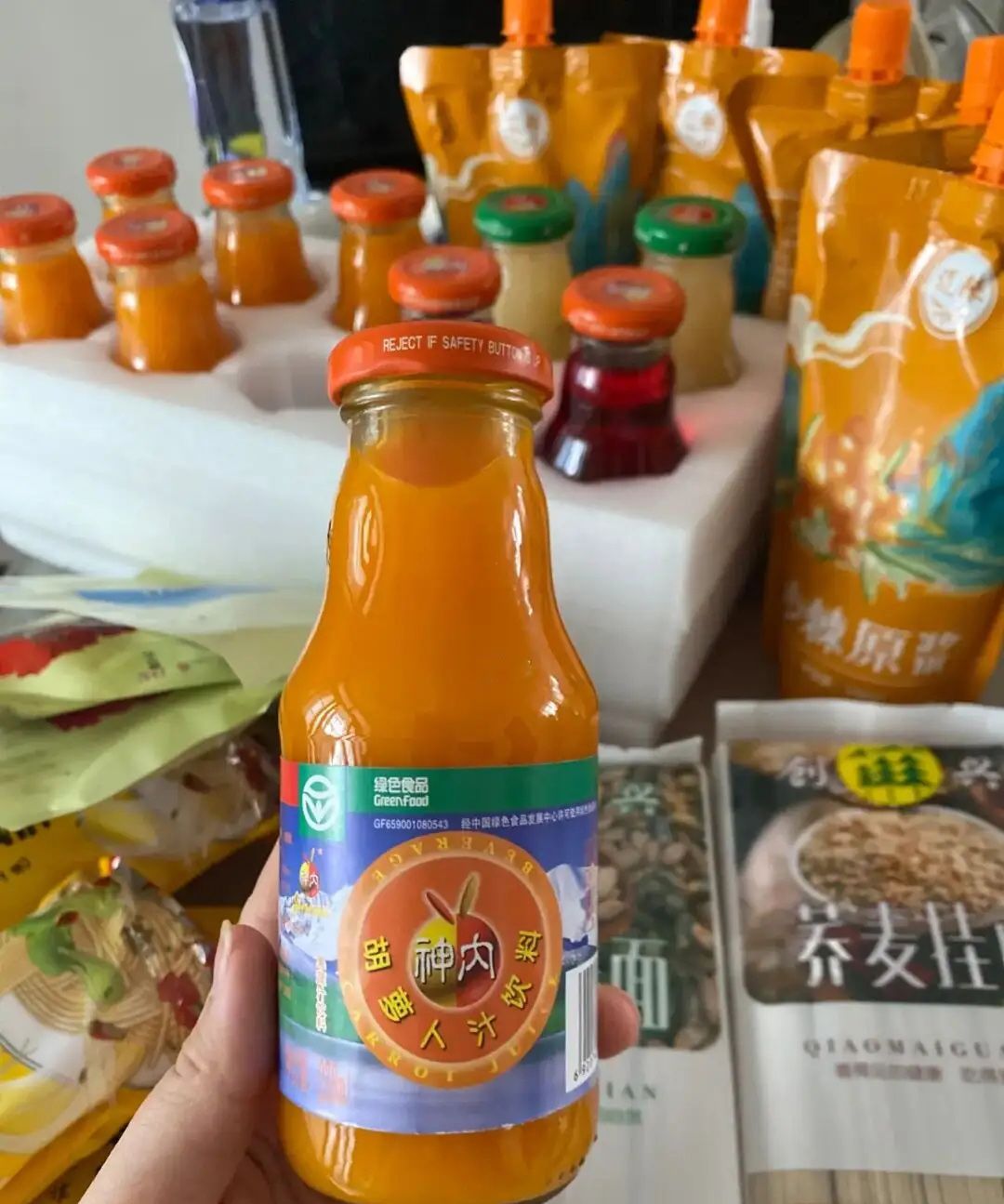 1、新疆石河子大学的胡萝卜汁,不得不说就光说这颜值,看起来就像是一瓶果汁饮料,特别的浓稠,隔着瓶子都感觉很香,是新疆90后小时候都喝过的饮料,大家都说他们亮晶晶的眼睛和这个都有关系哦,也被称之为“万里之外的国货之光”!