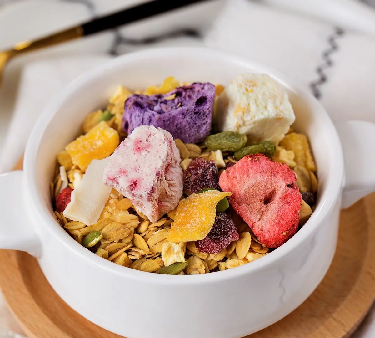 10、最最好看的还有南京农业大学的水果麦片,这个麦片是可以当零食吃的,早餐的时候可以代餐,用温水或者是配牛奶连喝带吃的,看得见的水果粒,虽然不多,但是还好啦!