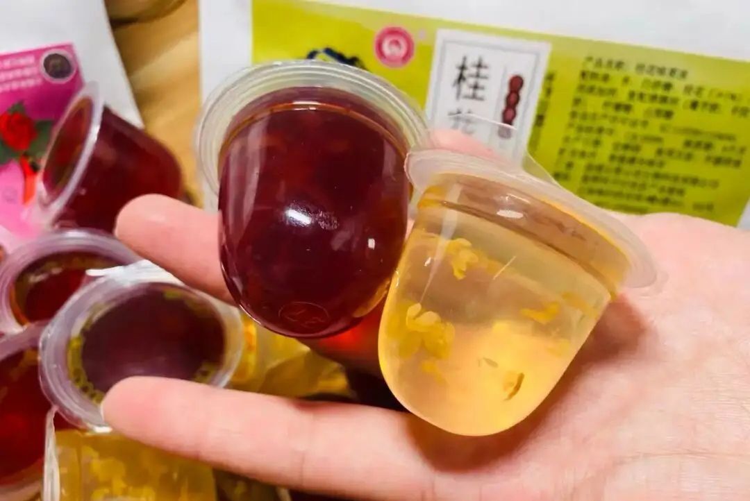 6、云南农业大学的鲜花果冻,首先对云南的印象就是鲜花饼,现在又来了鲜花果冻,包装朴素不出彩,但是每颗果冻里面都有鲜花的,有种琥珀的既视感,还有茉莉、菊花、玫瑰三种口味,看着就满满的少女心!而且还不贵,有种神仙的感觉,就是那种一口下去都是鲜花的感觉!