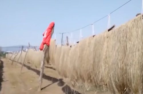 另外,或许是为了进一步降低生产成本,部分企业做好的粉条被拉到附近的空地上进行晾晒,或有蝇虫环绕,或有污水横流,甚至晾晒场地与厕所相邻。
