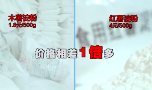 而最为重要的是,木薯淀粉市场价约为1.8元/500g,但红薯淀粉售价则为4元/500g,二者相差超过一倍。