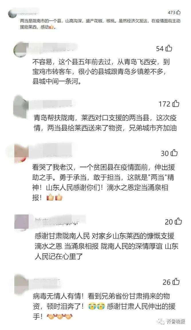 当年你伸援手助我脱贫,今天你有难我来相帮。莱西发生疫情,千里之外的甘肃两当县作为对口协作单位紧急筹集30多万元防疫物资日夜兼程1500公里驰援,满载当地一片牵挂和爱心的货车8日晚抵达莱西,用行动帮助莱西尽快渡过难关,战胜疫情。