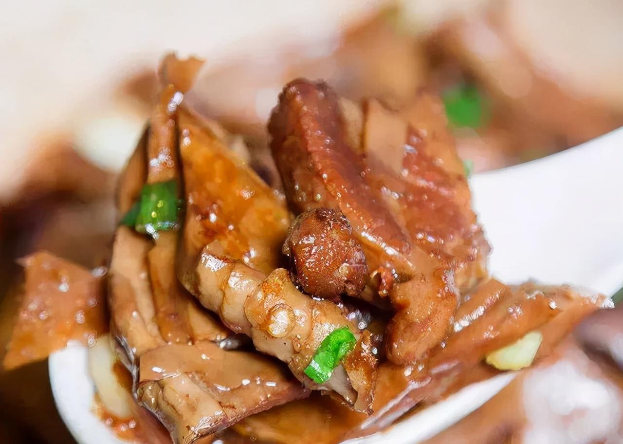 安徽人家酒店的问政山笋煲,箨红肉白,质嫩味鲜,加之在烹饪过程中加佐料提味,成菜后,脆嫩可口,笋味微甜,如同鲜笋一样,吊人胃口,作为徽菜名吃,经久不衰。