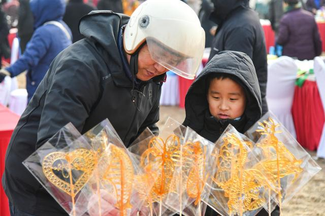 1月30日,小朋友在山东泰安大集上挑选糖画。新华社记者 朱峥 摄1月30日,山东省泰安市高新区北集坡街道组织的“品书香 赏非遗 逛大集”活动热闹开集,丰富多彩的文艺节目和便民服务项目吸引周边村镇居民前来逛大集办年货。